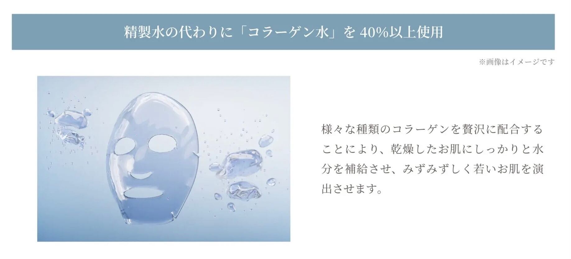 マスクシートはシルクのように柔らかな肌触りの高級テンセル素材にゲル化コラーゲンを挟んだ3層構造。