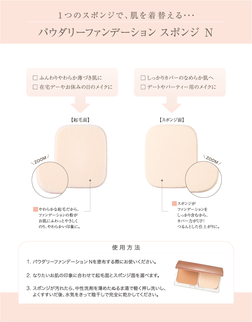 〇使い心地や仕上がりが悪くなった場合は、新しいスポンジをお買い求めください。